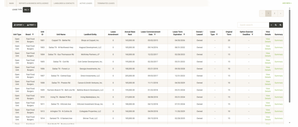 Active Leases – Quick Access