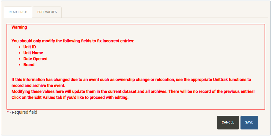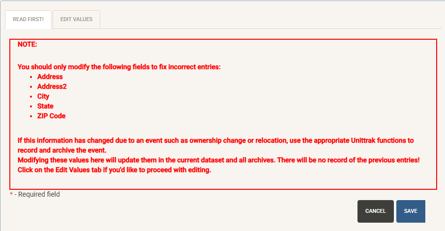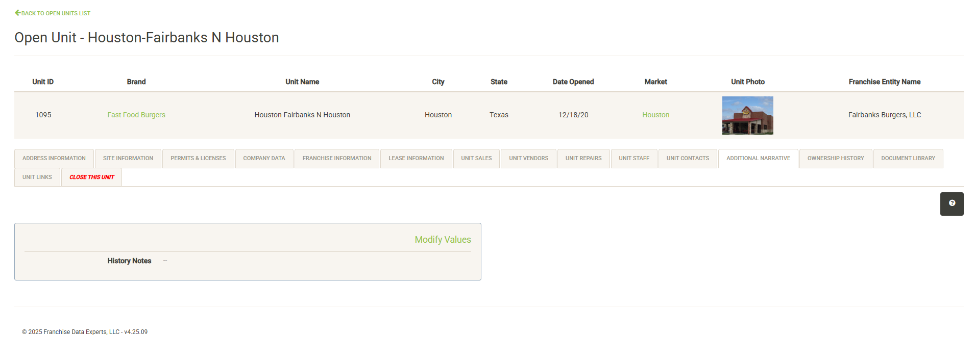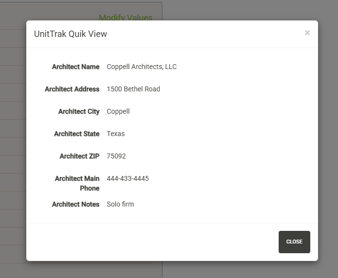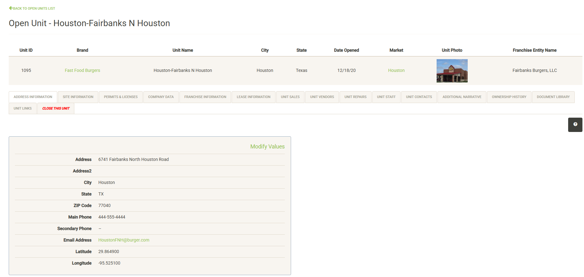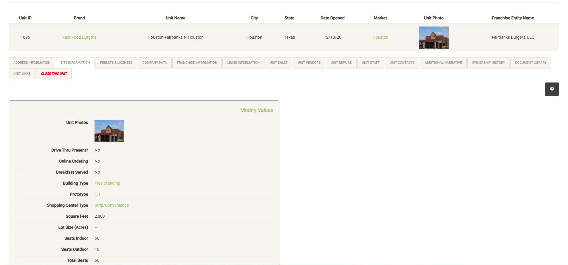 Click “Modify Values” (only visible with proper permissions) to update the information on this page.