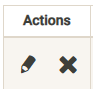 The Actions column includes the ability to edit the data associated with a document (edit pencil) or delete the document from the server (X button).