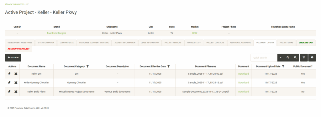 Franchise Document Tracking