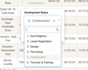 You can also use the Lease Type dropdown to filter the list by specific lease types: Open Unit, Development Project, Closed Unit.