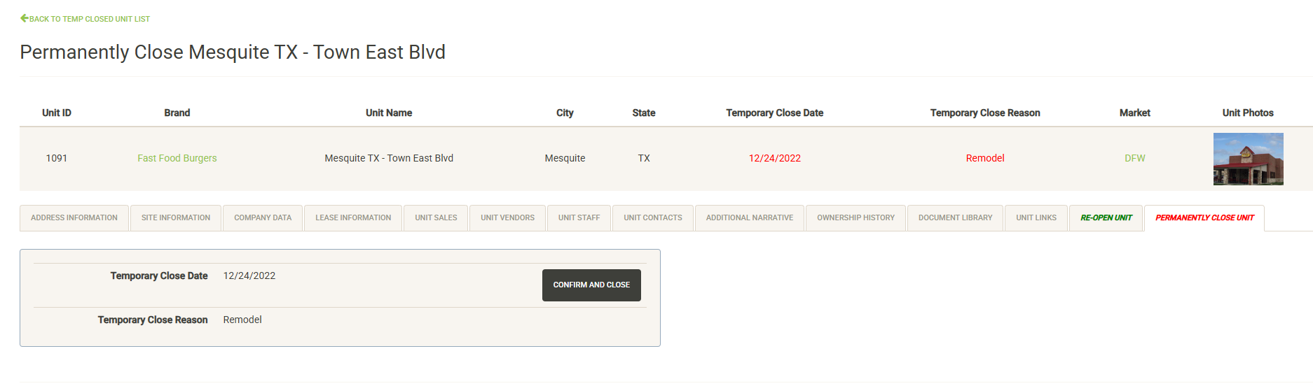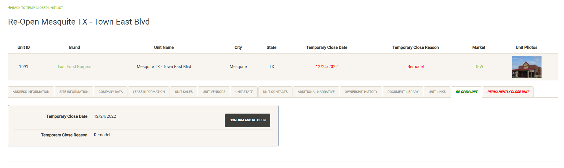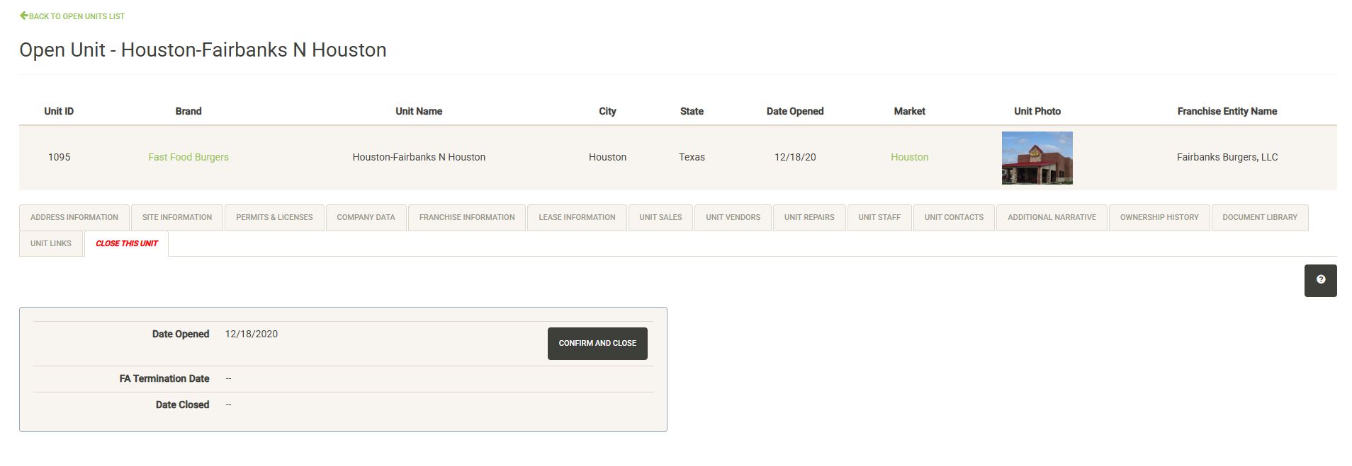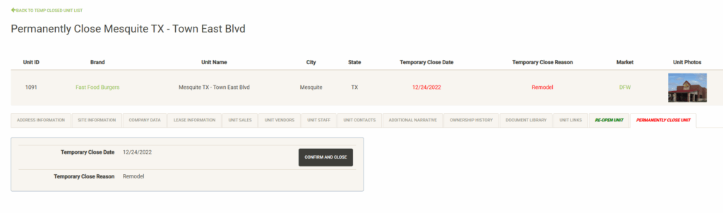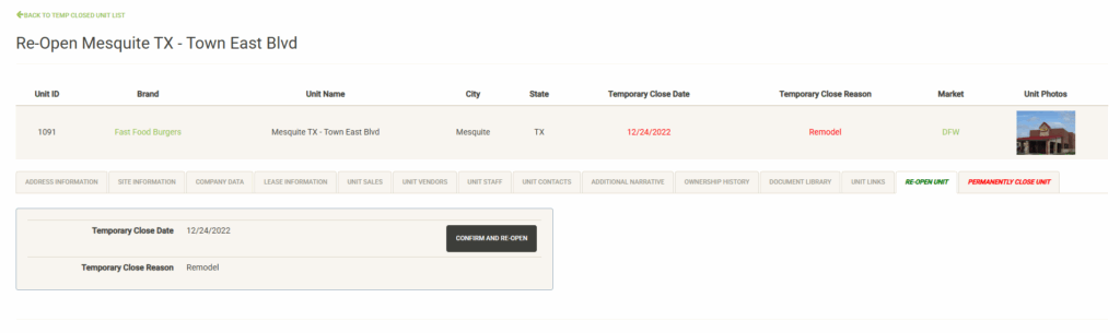 - Units – Manage your portfolio of open units here. You can also access data on units that were sold or closed.