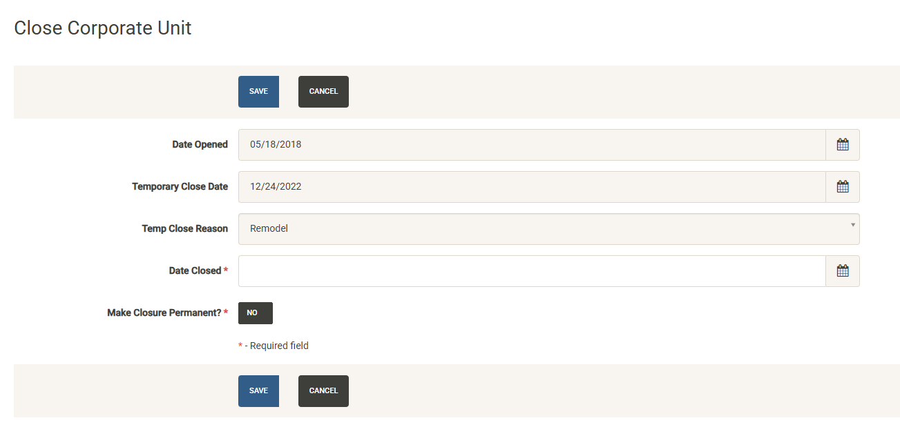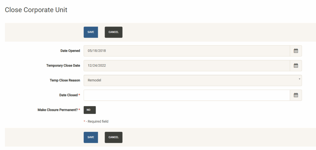 - Closed Units