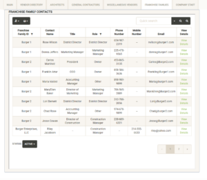 Click on View Details to view or edit the contact information. This will take you to the Franchise Family contacts page: