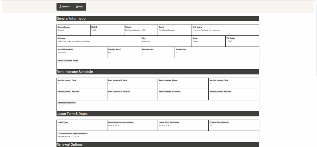 - Lease – Navigate through your current and former leases in this module.